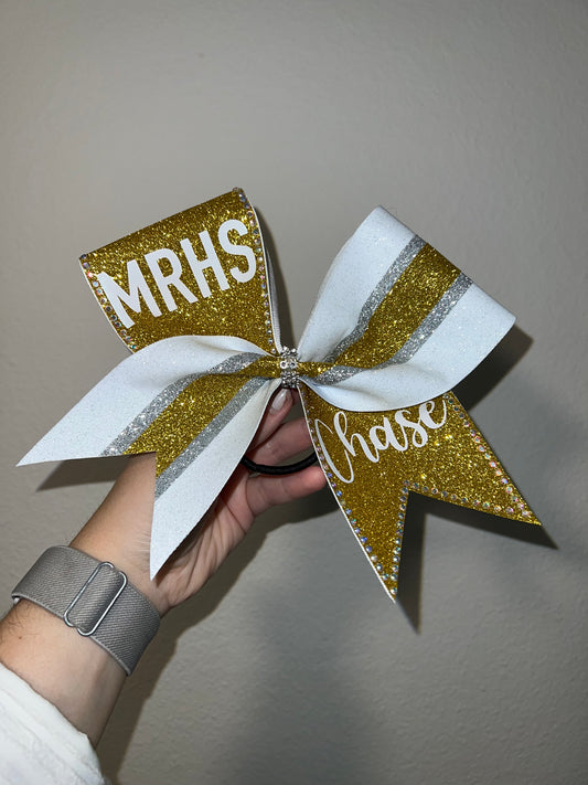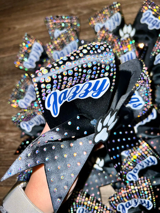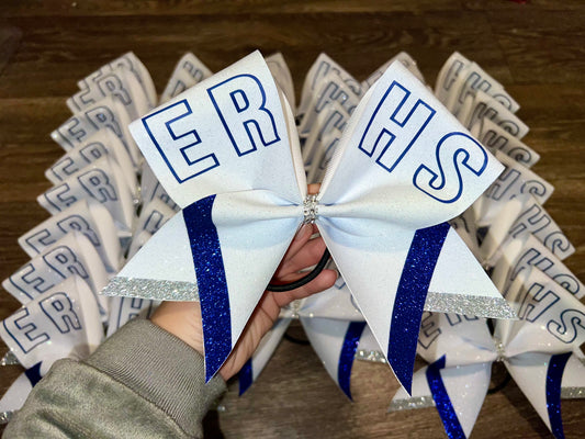 The below items are just a few examples of what I am able to do when it comes to custom bows. Please know that ALL colors, rhinestones, writing, etc. can be changed to how you'd like! Your options aren't limited to the below, I'll happily create you a brand new style based off of your requests :)