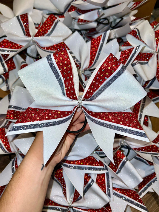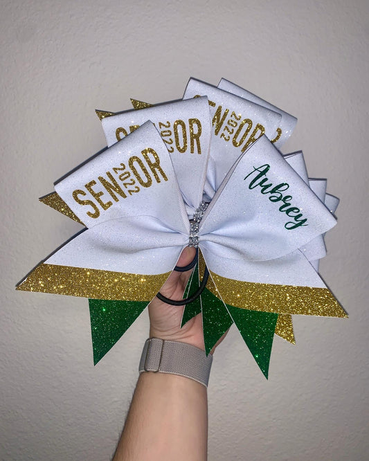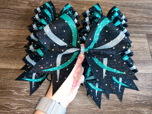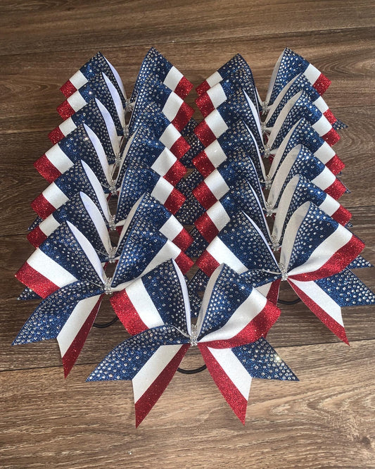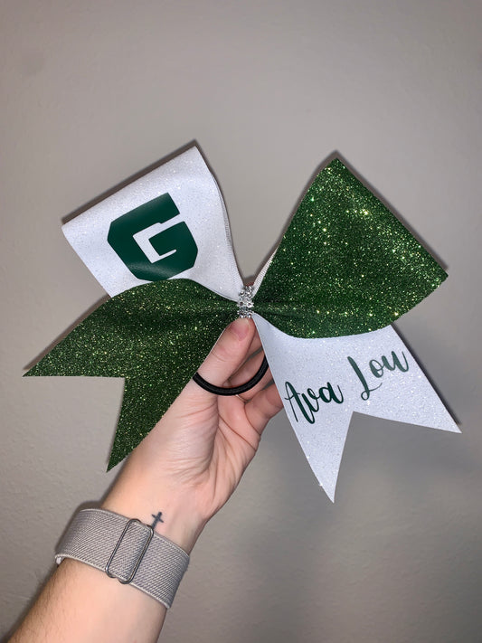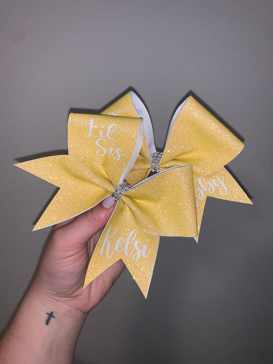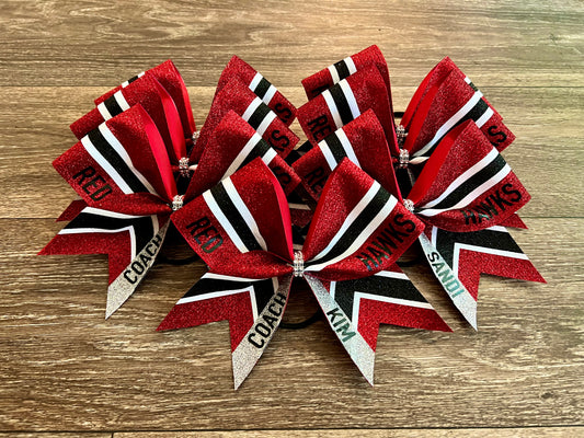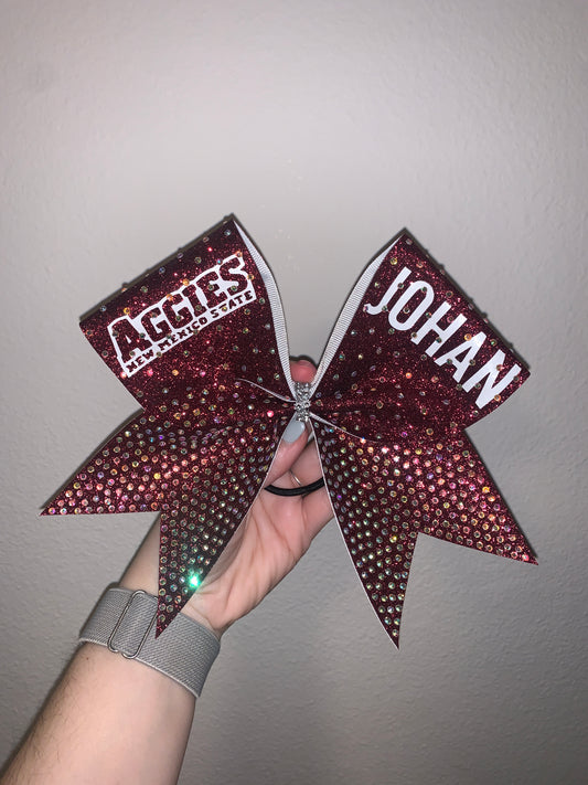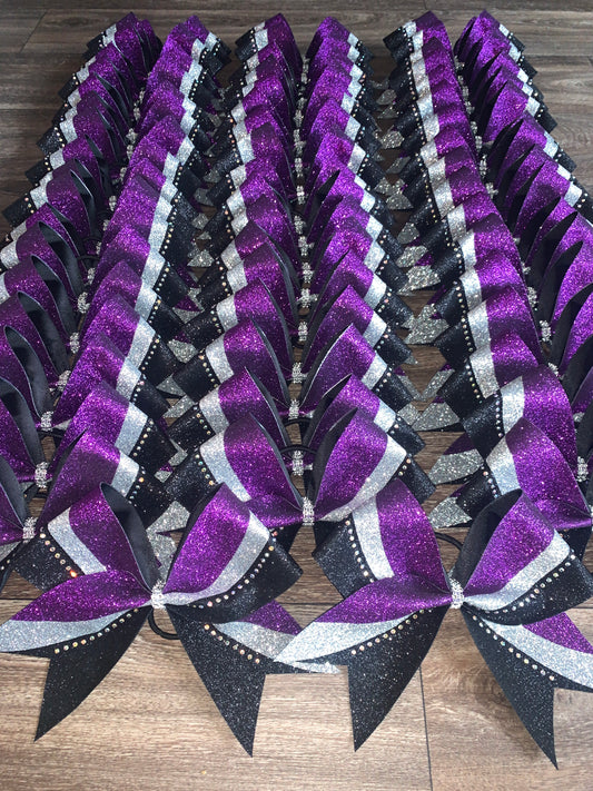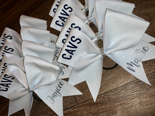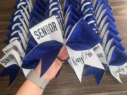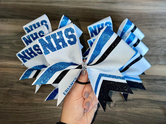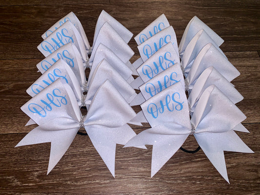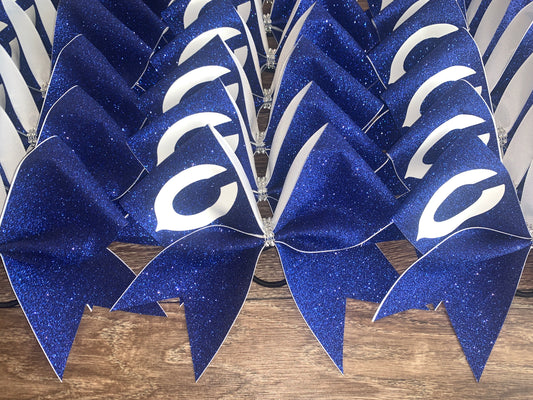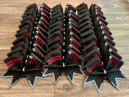 The below items are just a few examples of what I am able to do when it comes to custom bows. Please know that ALL colors, rhinestones, writing, etc. can be changed to how you'd like! Your options aren't limited to the below, I'll happily create you a brand new style based off of your requests :)