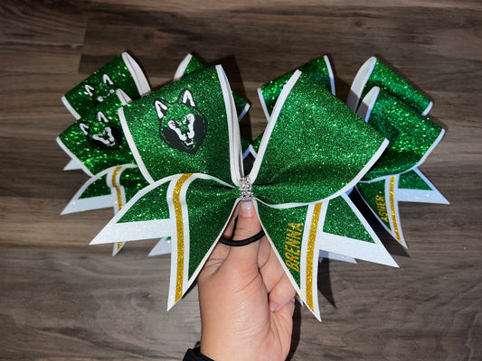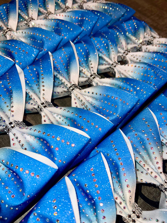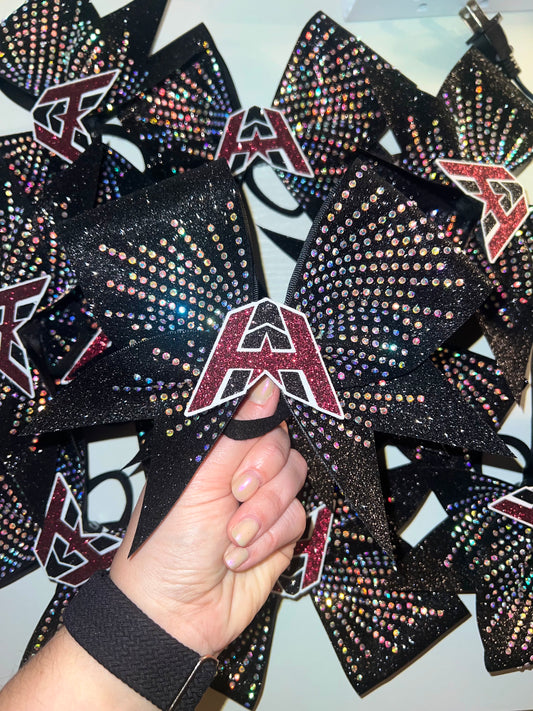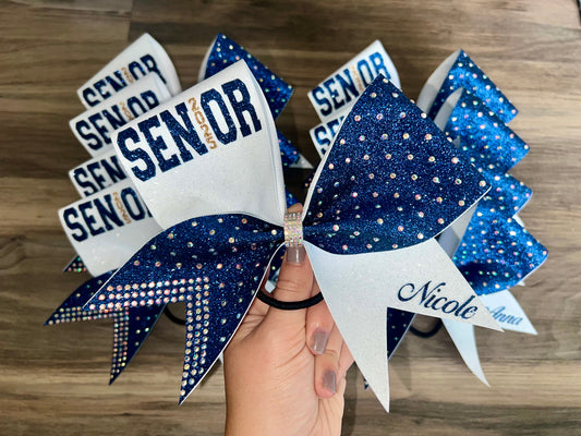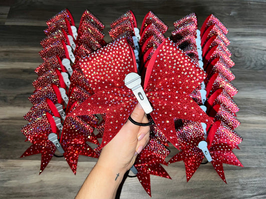 The below items are just a few examples of what I am able to do when it comes to custom bows. Please know that ALL colors, rhinestones, writing, etc. can be changed to how you'd like! Your options aren't limited to the below, I'll happily create you a brand new style based off of your requests :)