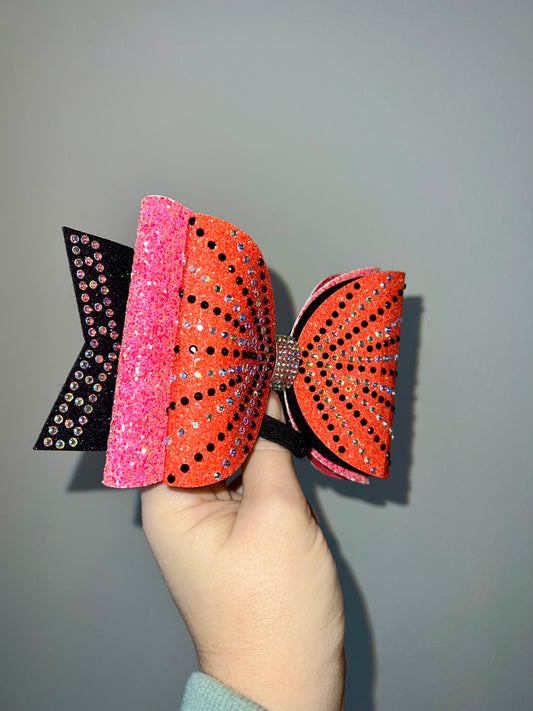 The below items are just a few examples of what I am able to do when it comes to custom bows. Please know that ALL colors, rhinestones, writing, etc. can be changed to how you'd like! Your options aren't limited to the below, I'll happily create you a brand new style based off of your requests :)